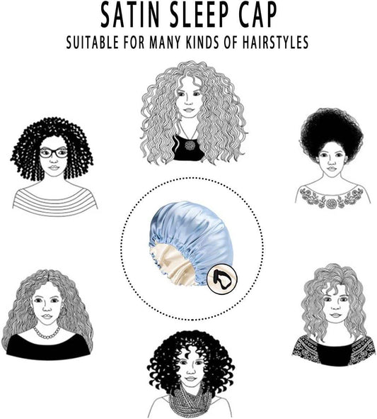 Paquete de 2 gorros de satén para mujer: gorro de dormir extragrande de doble capa ajustable, protección impermeable para cabello rizado y largo.